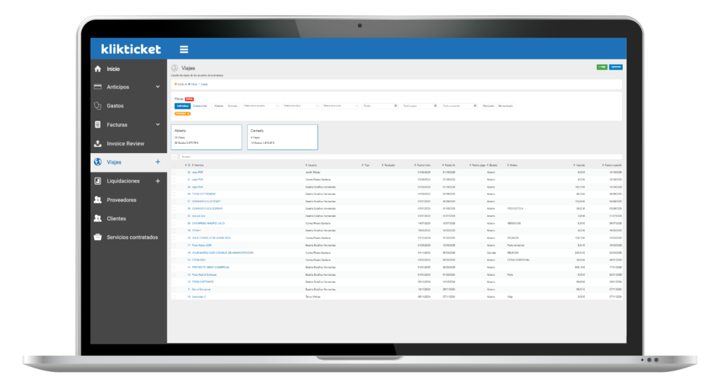 Controla los gastos asociados a viajes, proyectos o eventos y vincúlalos directamente con los usuarios que los generan.